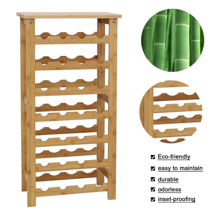 Бамбуковая стойка для красного вина, 28 бутылок, деревянная стойка для вина, аксессуары, деревянная отдельно стоящая столешница, Штабелируемая полка для хранения вина (28-Bott